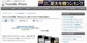 米国のCOMPUTERWORLDによると、期待の星であるアップルiPhone 5は性能、スペックともに、アンドロイドの比ではないとのことです。